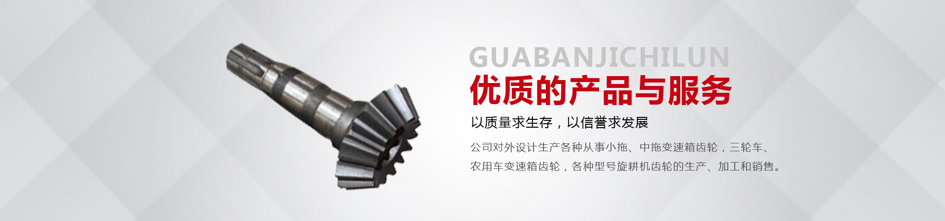 本廠位于省會東南60公里的全國重點(diǎn)鎮(zhèn)——大陸村鎮(zhèn)。本廠在市場內(nèi)設(shè)有銷售公司,經(jīng)銷工程機(jī)械;農(nóng)用拖拉機(jī);農(nóng)機(jī)具的整機(jī)和全車配件。市場緊靠308國道,距青銀高速寧晉路口14公里,交通十分方便。主要從事小拖、中拖變速箱齒輪,三輪車、農(nóng)用車變速箱齒輪,各種型號旋耕機(jī)齒輪、收獲機(jī)械變速箱齒輪的生產(chǎn)、加工和銷售。同時加工定做各種直齒輪,傘齒輪,斜齒輪,鏈輪,齒輪軸等機(jī)械產(chǎn)品。廠內(nèi)檢測手段齊全。十幾年來與河北、北京、山東、安徽、河南、吉林、陜西、山西、寧夏、黑龍江、遼寧等省市的企業(yè)建立了穩(wěn)固的業(yè)務(wù)關(guān)系。產(chǎn)品質(zhì)量穩(wěn)定、價格合理、供貨及時。